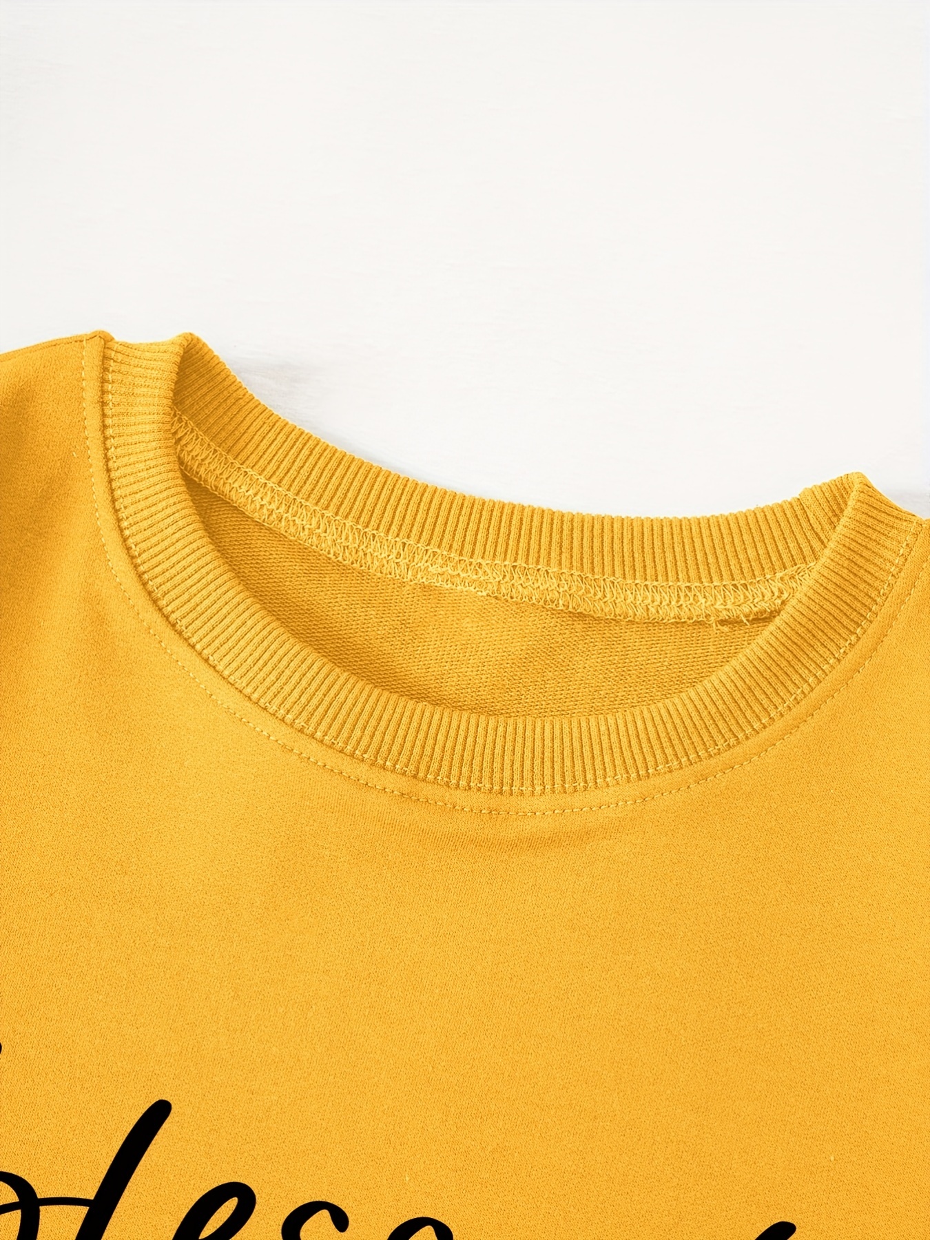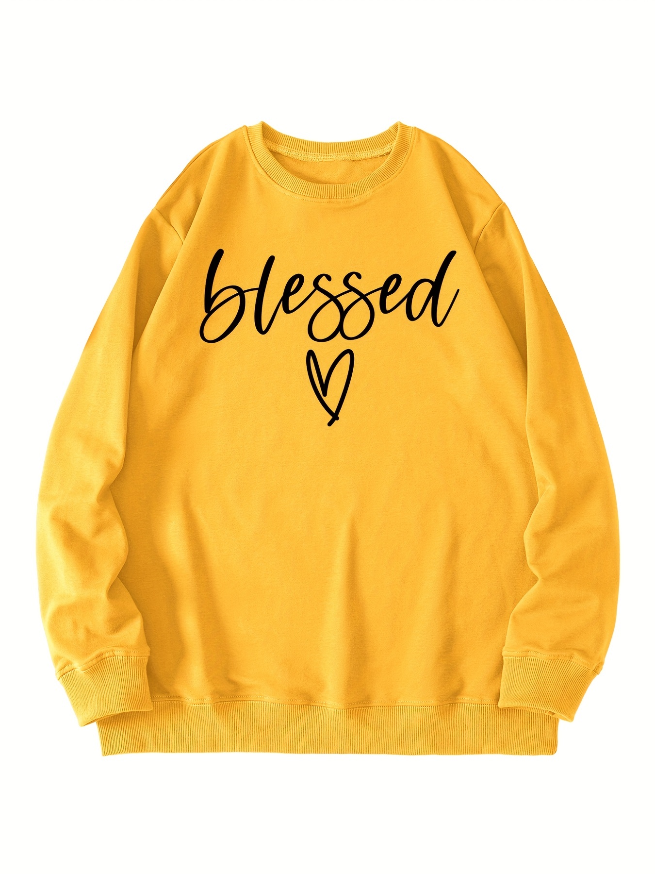 very good Blessed Print Crew Neck Sweatshirt, Casual Long Sleeve Loose Sweatshirt, Women’s Clothing – 100% recommend