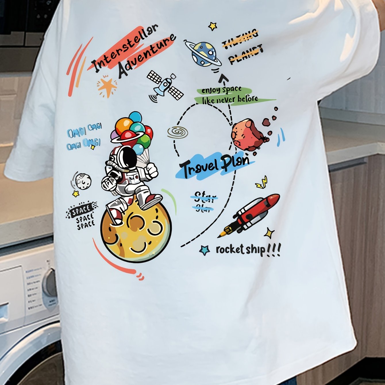 very good Cartoon Style Spaceman Print Men’s Short Sleeve T-shirts, Comfy Casual Breathable Tops For Men’s Fitness Training, Jogging, Men’s Clothing – 100% recommend