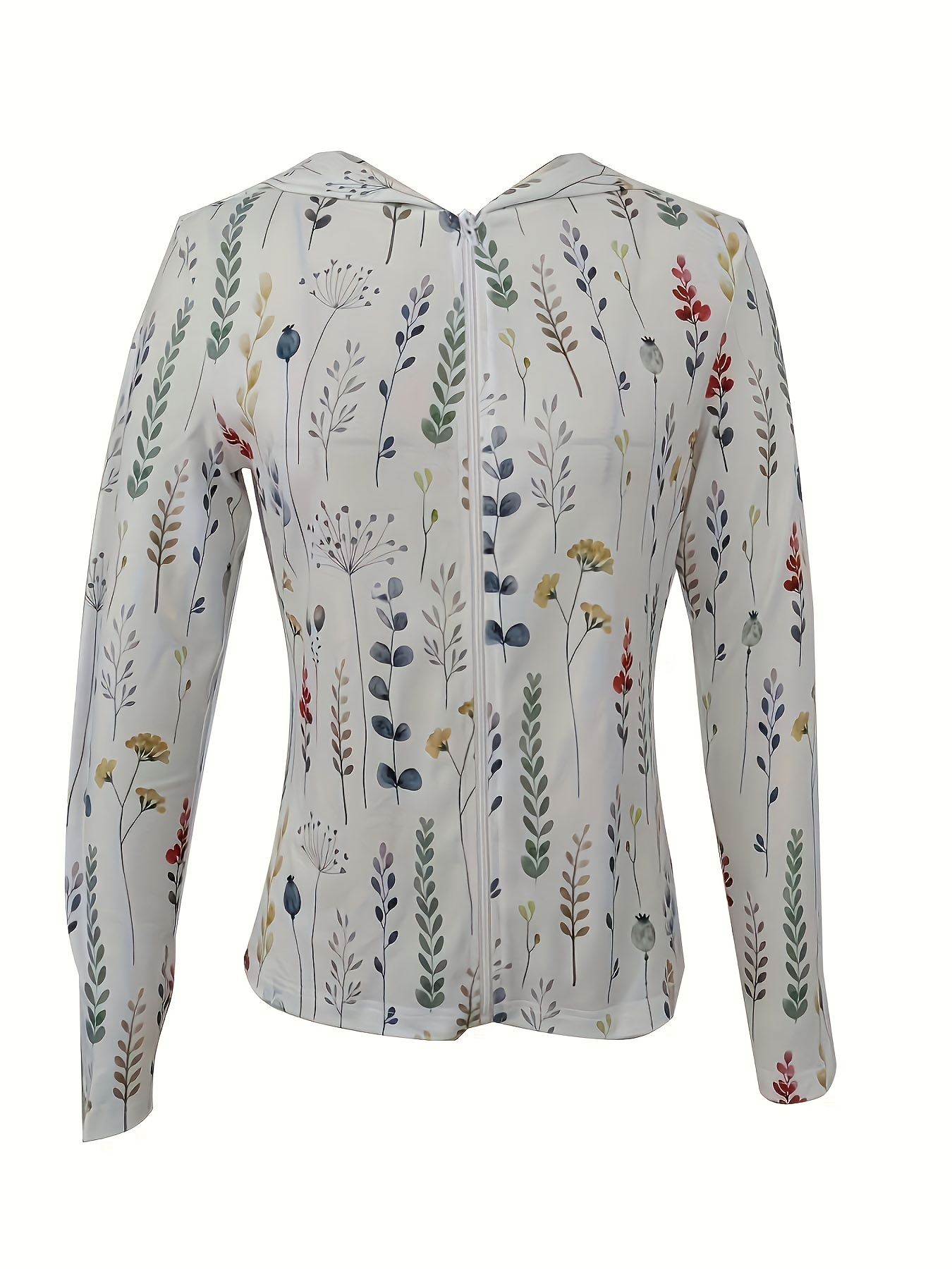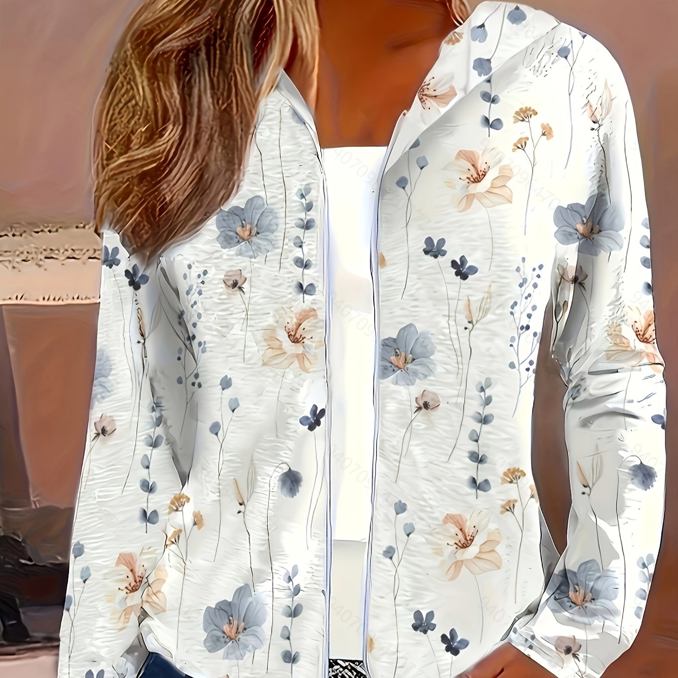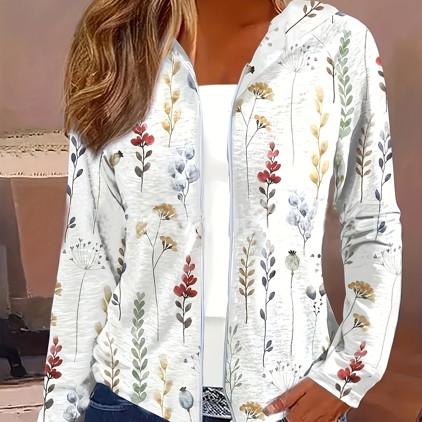 Floral Print Zip Up Hoodie, Casual Long Sleeve Hoodies Sweatshirt, Women’s Clothing