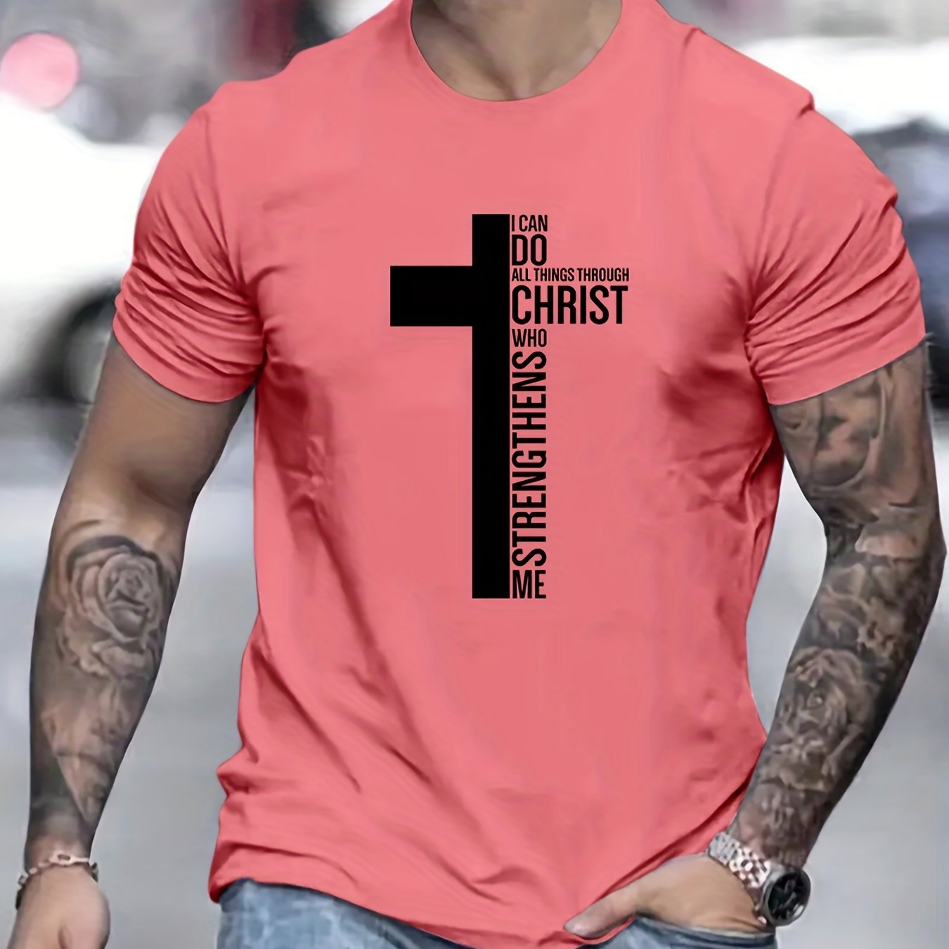 Men’s Fashion Cross Graphic Print Casual Short Sleeve T-shirt for Summer Outdoor – Slightly Stretch Crew Neck Tee
