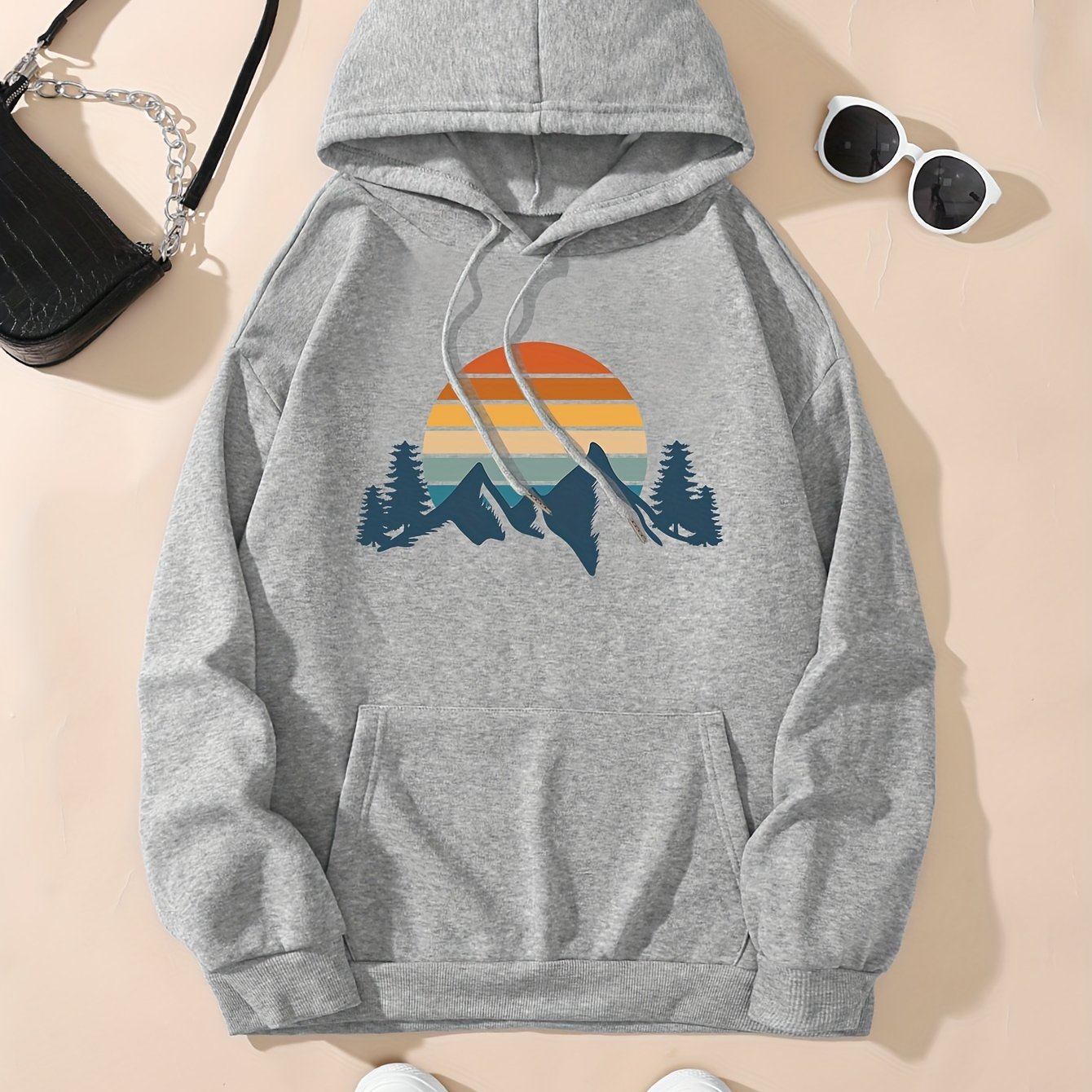 The price of Mountains & Sun Print Hoodie, Vintage Drawstring Kangaroo Pocket Hoodies Sweatshirt, Women’s Clothing is really cheap compare to other websites.Really happy I found this website.