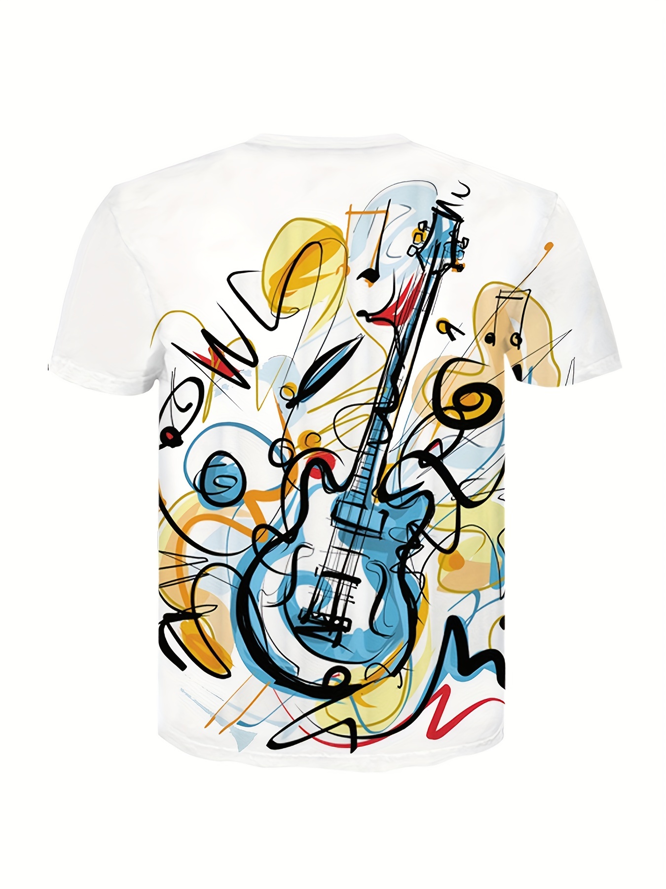 Stylish Guitar Pattern Print Men’s Comfy T-shirt – Summer Graphic Tee