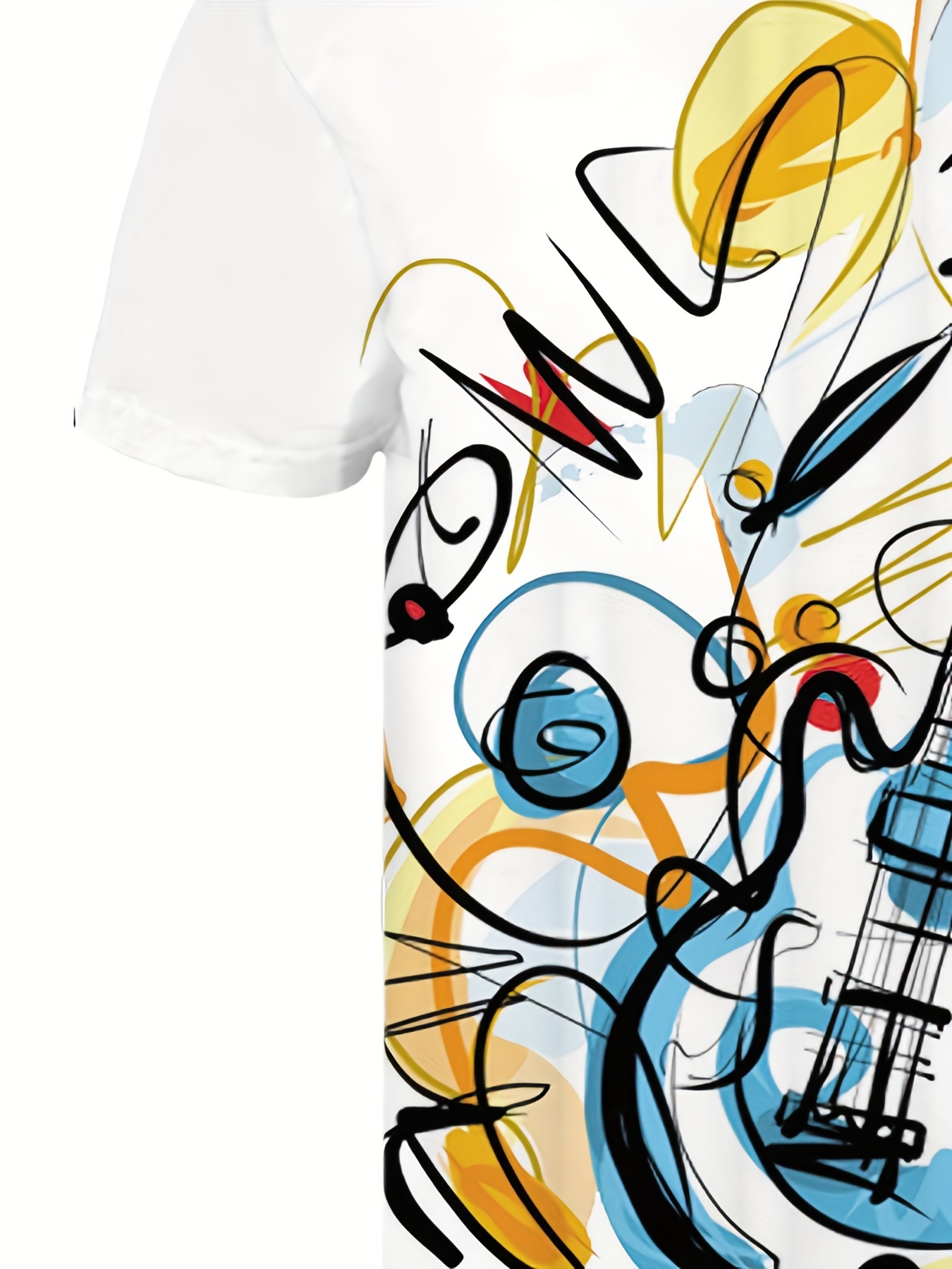 stylish guitar pattern print mens comfy t shirt graphic tee mens summer clothes mens outfits details 0