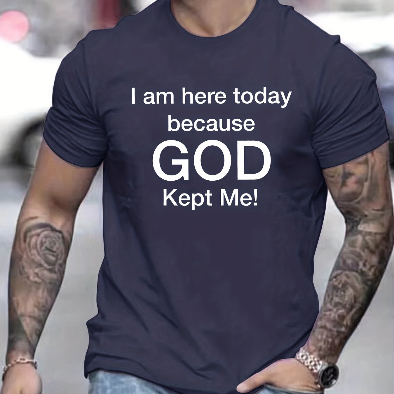 Tees For Men, ‘God Kept Me’ Print T Shirt, Casual Short Sleeve Tshirt For Summer Spring Fall, Tops As Gifts