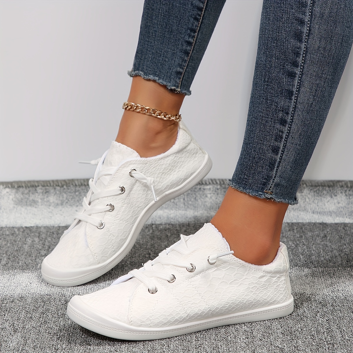 7 reviews for Women’s Solid Color Canvas Shoes, Casual Lace Up Outdoor Shoes, Lightweight Low Top White Shoes